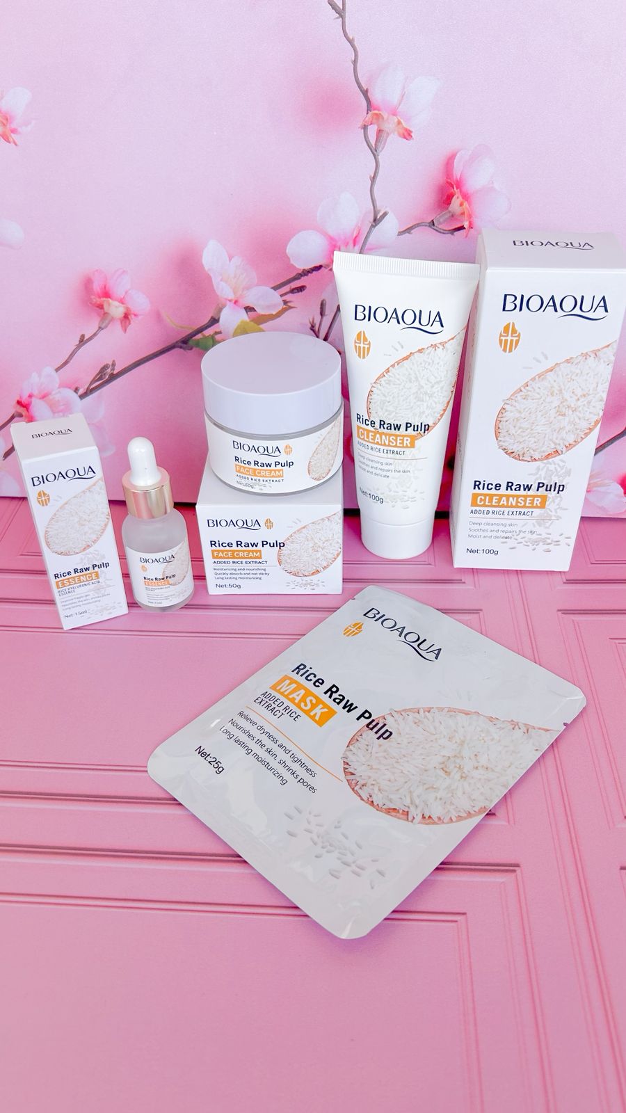 El Kit Aclarante Bioaqua 4 en 1 es tu pase directo a un rostro impecable. Inspirado en los secretos milenarios del arroz, este ritual transforma tu piel desde el primer uso.